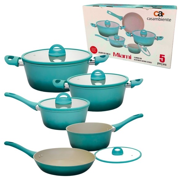 Conjunto de Panelas de Indução Revestimento Cerâmico Miami Verde – Casambiente – 5 Peças