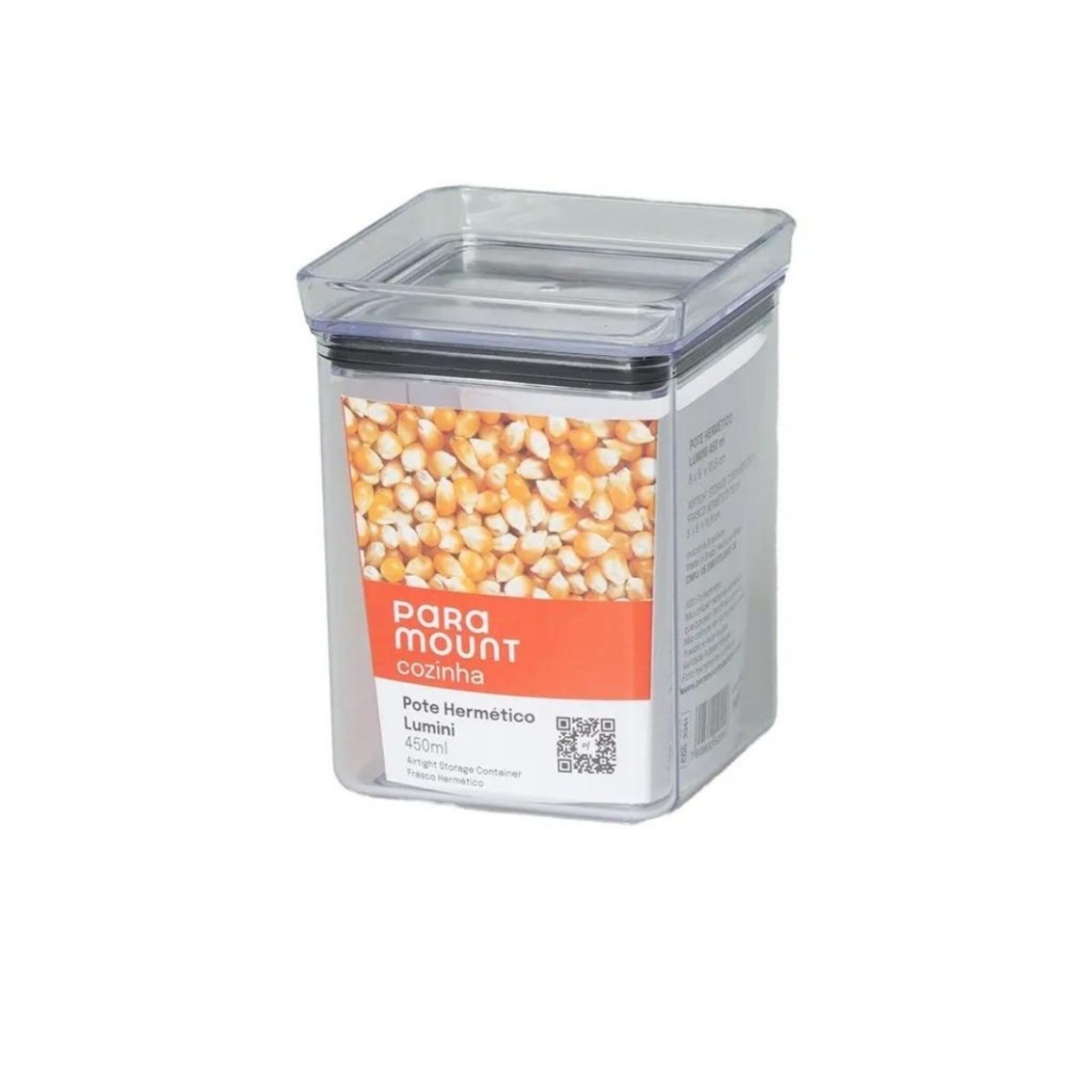 Pote Hermético Lumini Transparente – 450 mL – 8x8x10,8 cm – Paramount