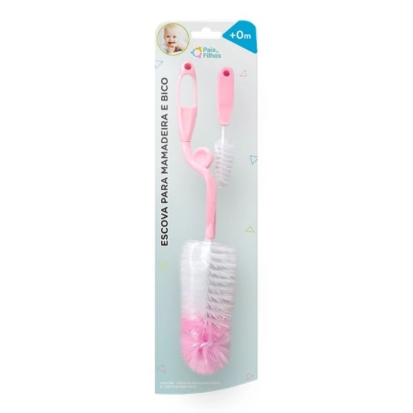 Escova para Mamadeira e Bico Rosa Linha Baby Pais & Filhos