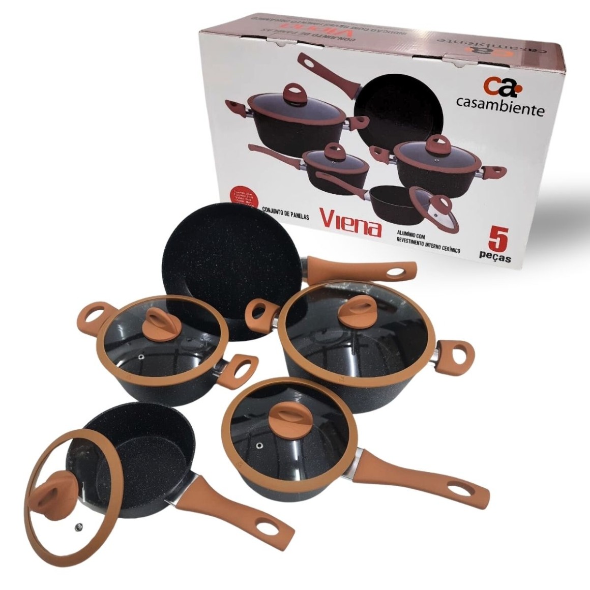 Conjunto de Panelas Viena Preta 5 Peças Alças Em Silicone